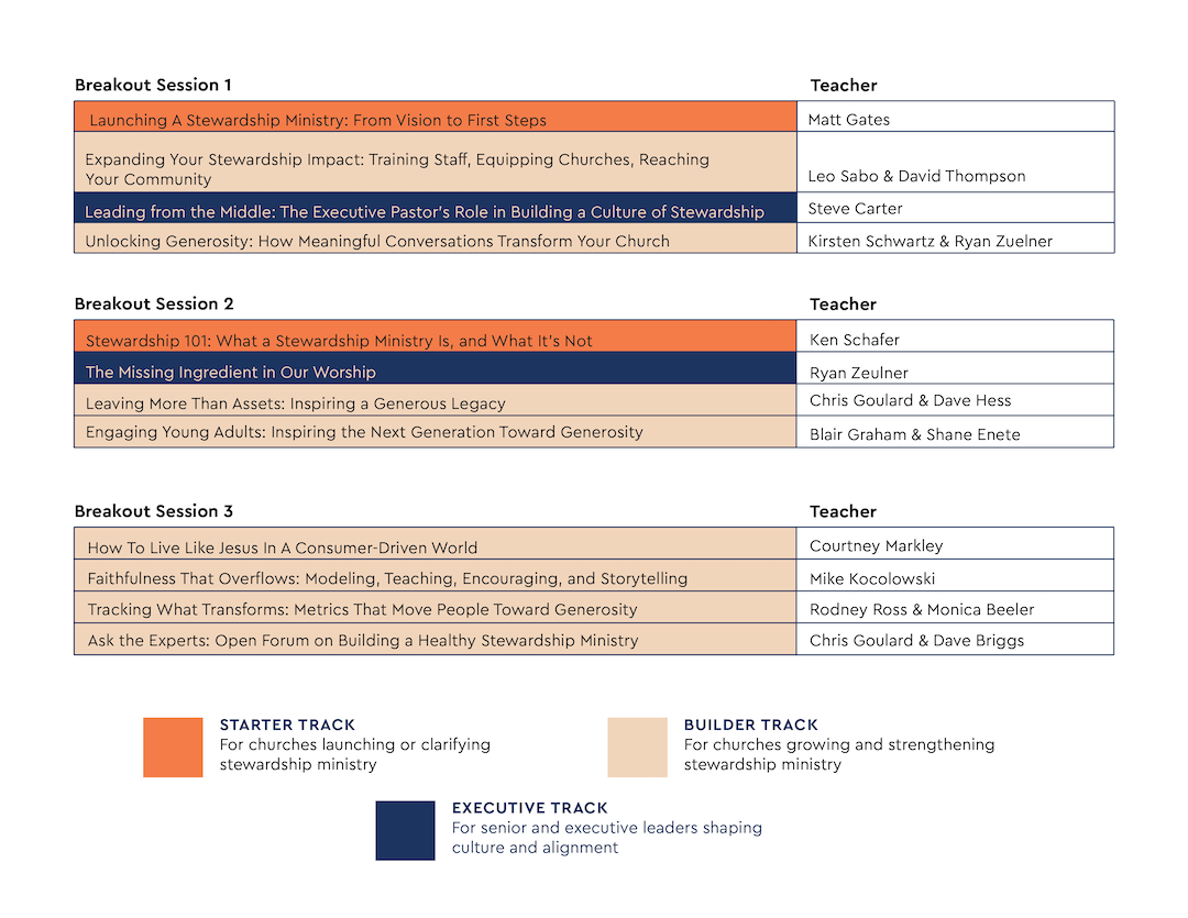 This track addresses leadership influence, discipleship culture, and how stewardship becomes embedded across staff, worship, and the life of the church.